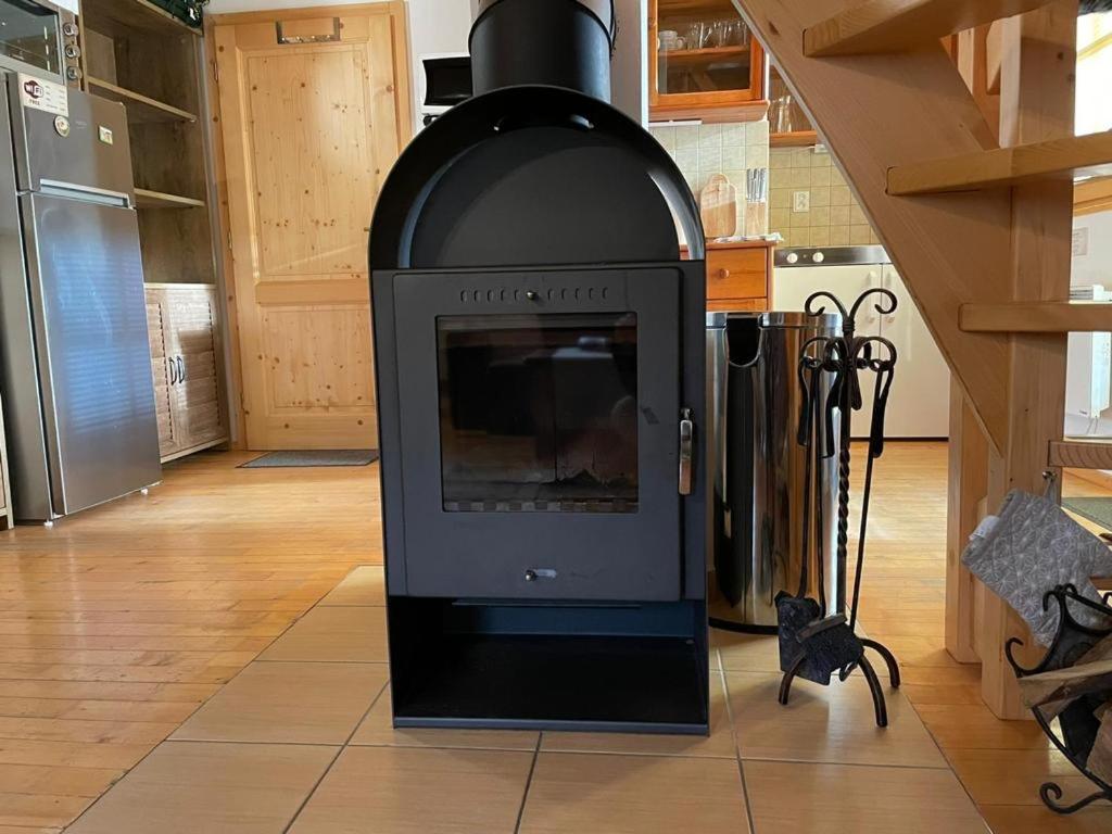 The holiday home with a terrace and mountain views features 2 bedrooms, a living room, a flat-screen TV, an equipped kitchenette with an oven and a microwave, and 1 bathroom with a shower. There is also a seating area and a fireplace.